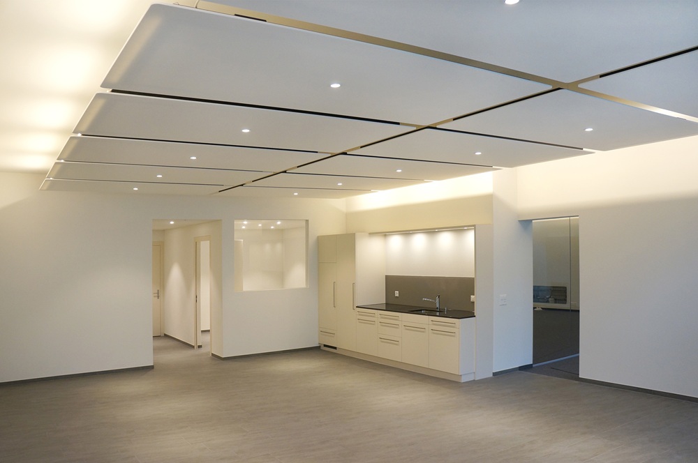 Deckensegel und hängende Akustikpaneelen bieten eine sehr gute Möglichkeit, die Akustik von Innenräumen zu verbessern.
